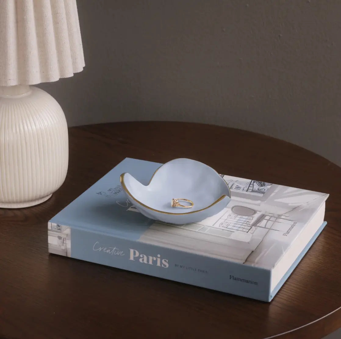 Notable for its artistic form, and brilliant enameled finish, rimmed in gold, the ENCANTO Soho Mini Heart (Periwinkle) is a unique expression of love. Great on the desk or vanity, or use to hold earrings and other small jewelry on your bedside table. Beatriz Ball’s intensely handmade products use eco-friendly and sustainable materials and are crafted by artisans who trace a heritage of metalworking for generations. Made of a top quality, easy-care, aluminum alloy with an enamel finish. This item is for decorative purposes only.