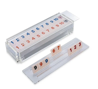 Classic Rummy tile game with a modern design. Comes with 4 Racks and 106 Tiles including 2 Jokers. This game is also known as Rummy Cube or Rummy Q. The original game by Pressman is called Rummikub®.
