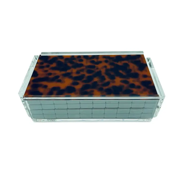 First photo shows all that is included in your set. Second photo shows the color and material of the sliding top of the box.