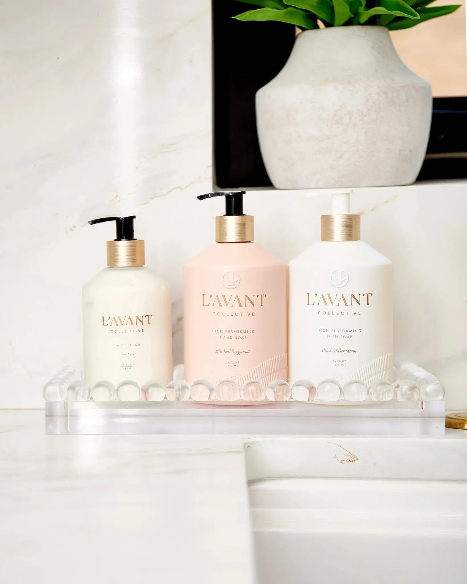 Our Tart by Taylor Bubble Large Lucite Tray is a versatile piece for any room in your home. With its clear acrylic and playful bubble trim, this tray is both practical and stylish, making it the ultimate statement piece for any space. Large is perfect for containing soaps and lotions in a guest bath. Medium is a great size for guest napkins as you are hosting. Small is a wonderful catch all or jewelry tray.
