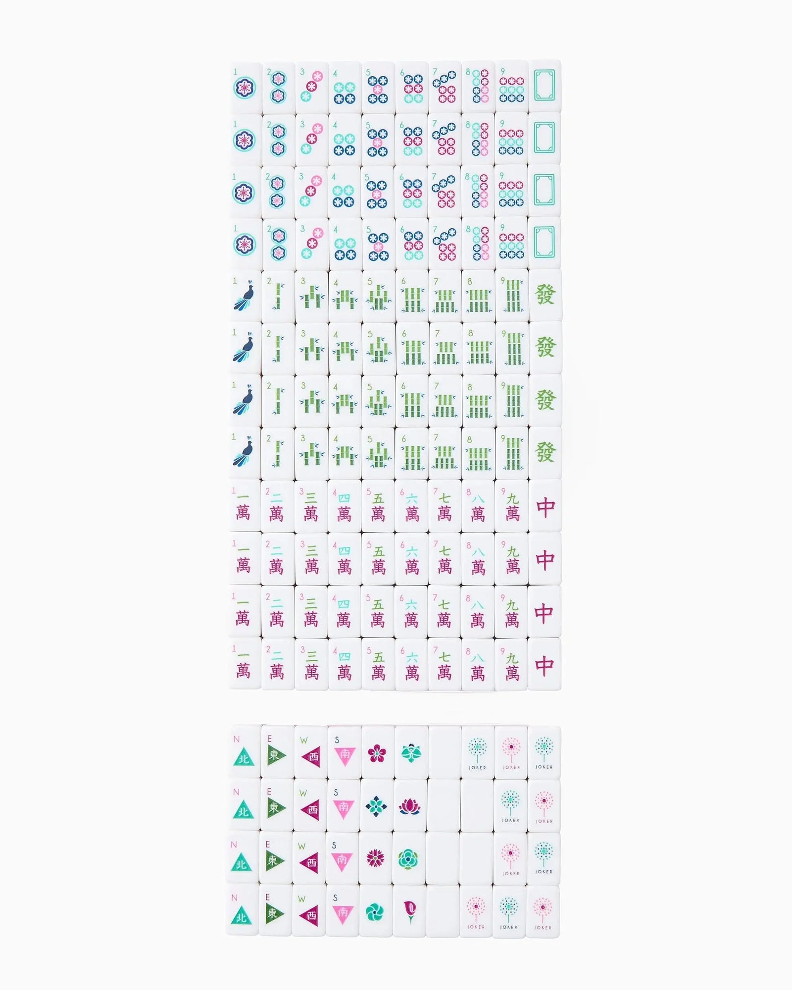 With 160 high-quality tiles, including 152 standard tiles, 6 blanks, and 8 jokers, you have everything you need to play Mahjong. The set also includes white wooden racks and a 22" x 22" mat, offering a perfect blend of portability and functionality.