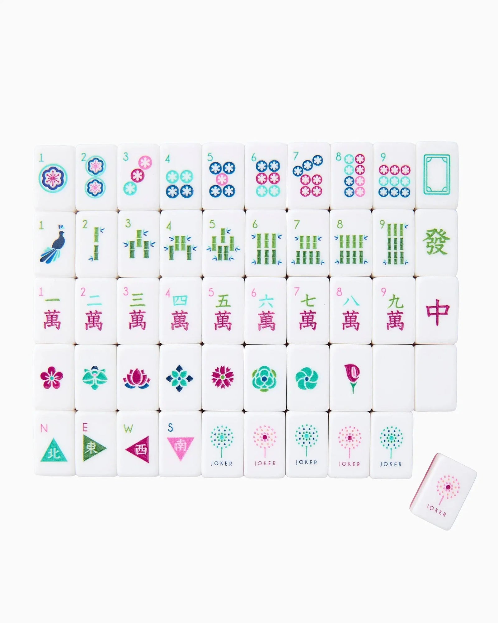 Take your Mahjong game wherever you go with our Oh My Mahjong Charleston Mahjong Travel Set! This compact and lightweight set effortlessly slips into your carry-on, ensuring that the joy of Mahjong is always within reach on your adventures. Crafted withplum, chartreuse, teal and coral, pink-toned tiles, this set exudes elegance and style.