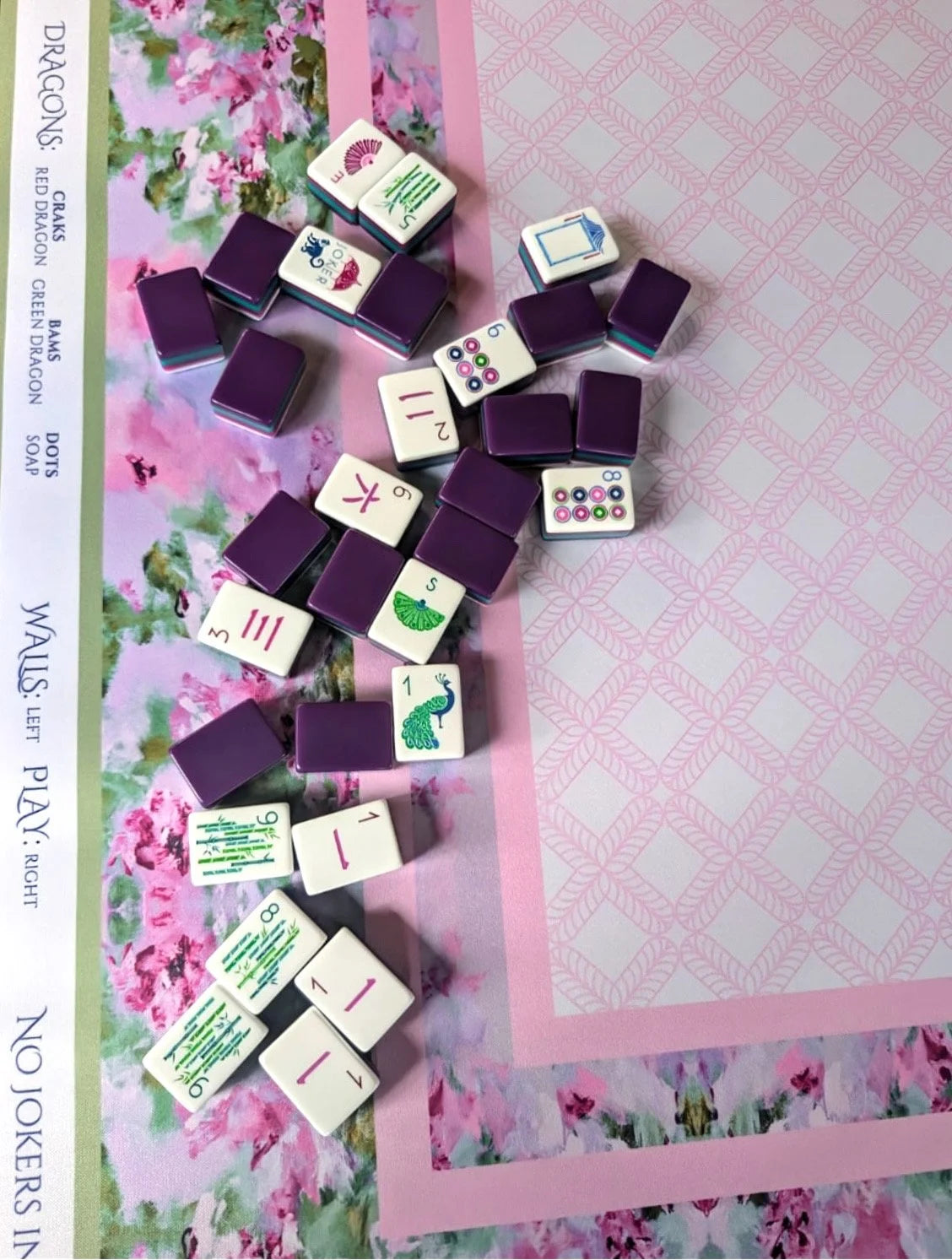 Elevate your game night with Amanda Toppe’s beautifully designed mahjong mats, where original artwork meets functional play. Each mat is crafted from durable neoprene with an anti-slip backing, easy-to-read directional markings around the edges, and includes a canvas carrying case for portability and protection. Thoughtfully sized for standard American mahjong tables (~33" × 33") and shipped rolled to avoid wrinkles, these mats bring artful style and practical performance to every gathering. Perfect for seasoned players, new learners, and anyone who loves to blend chic design with meaningful moments around the table, these mats make an exceptional gift or centerpiece for your next game night.