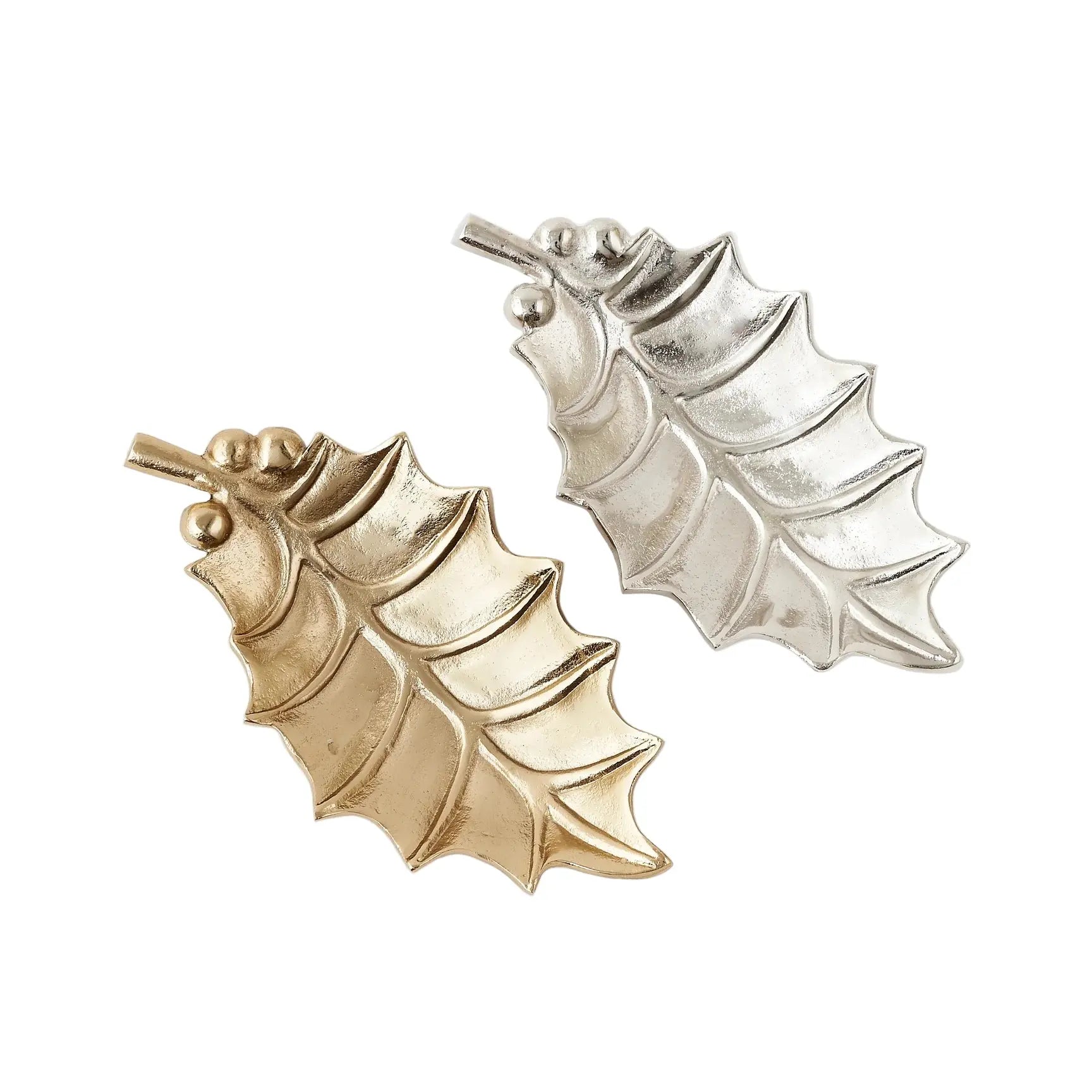 Bring festive charm to your home or gifts with this delightful 9.75-inch metal dish shaped like a holly leaf, complete with berry accents. Perfect for serving appetizers, nuts, or candies during holiday gatherings.